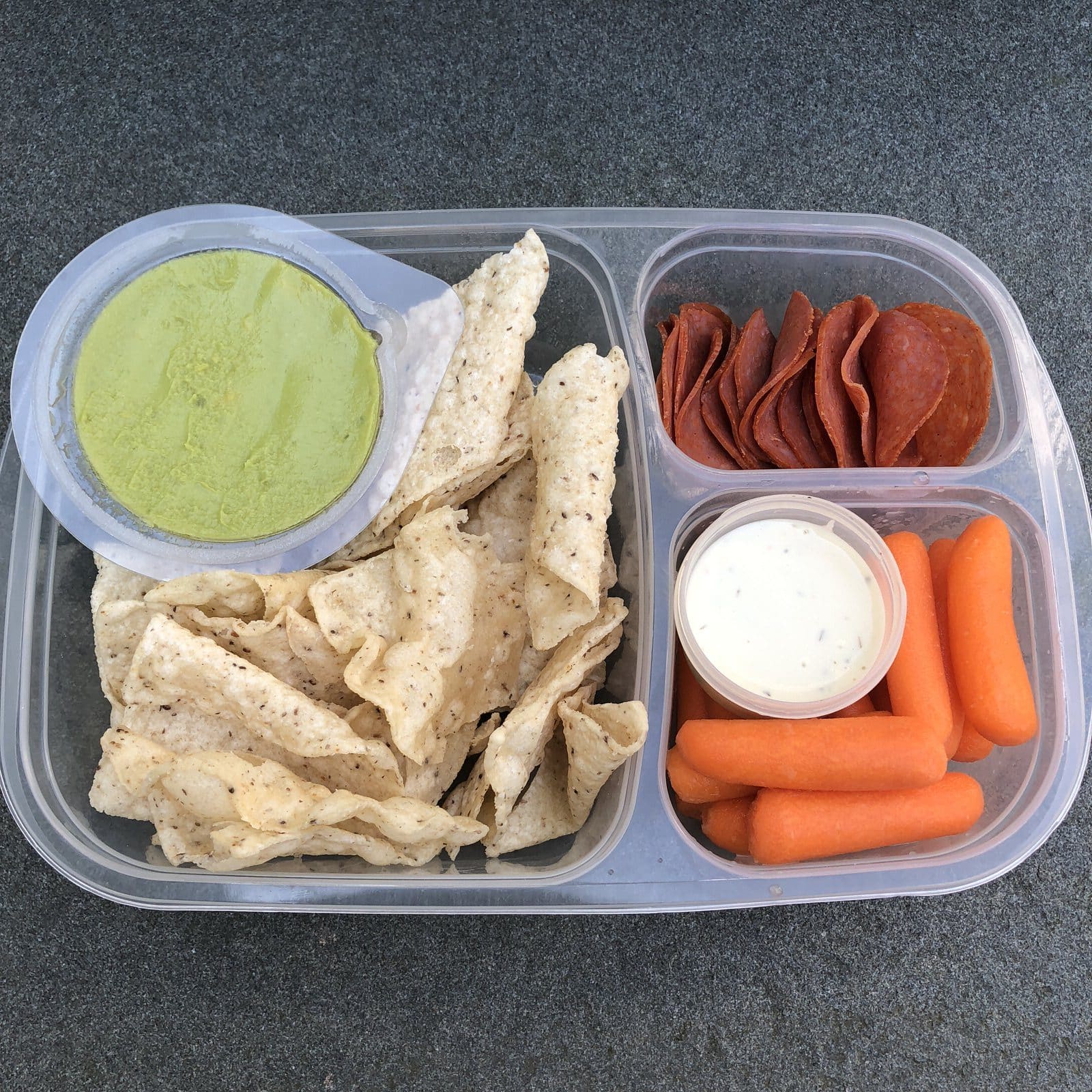 - Siete chips with guacamole, carrots and ranch, turkey pepperoni