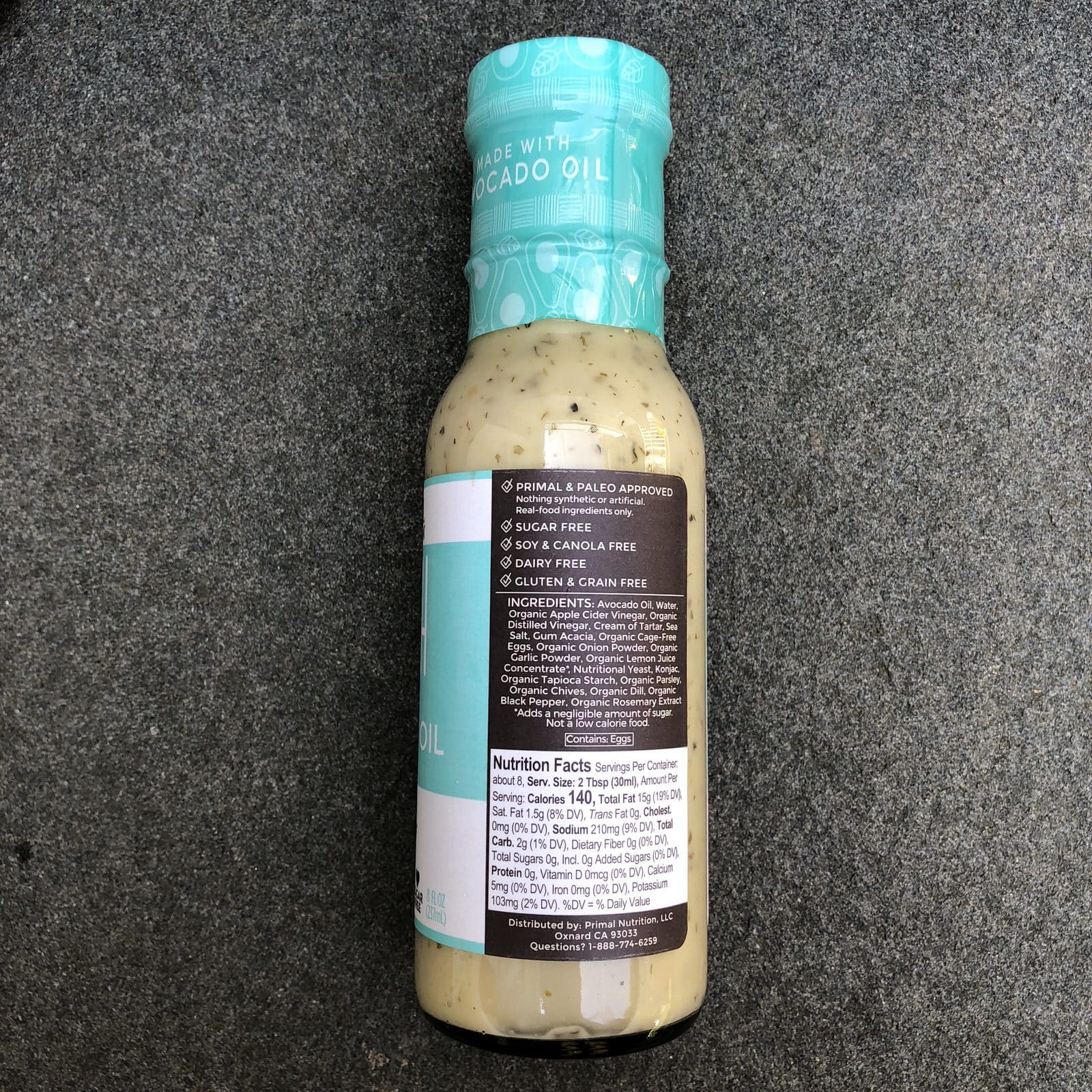 - I use Primal Kitchen ranch dressing made with avocado oil.